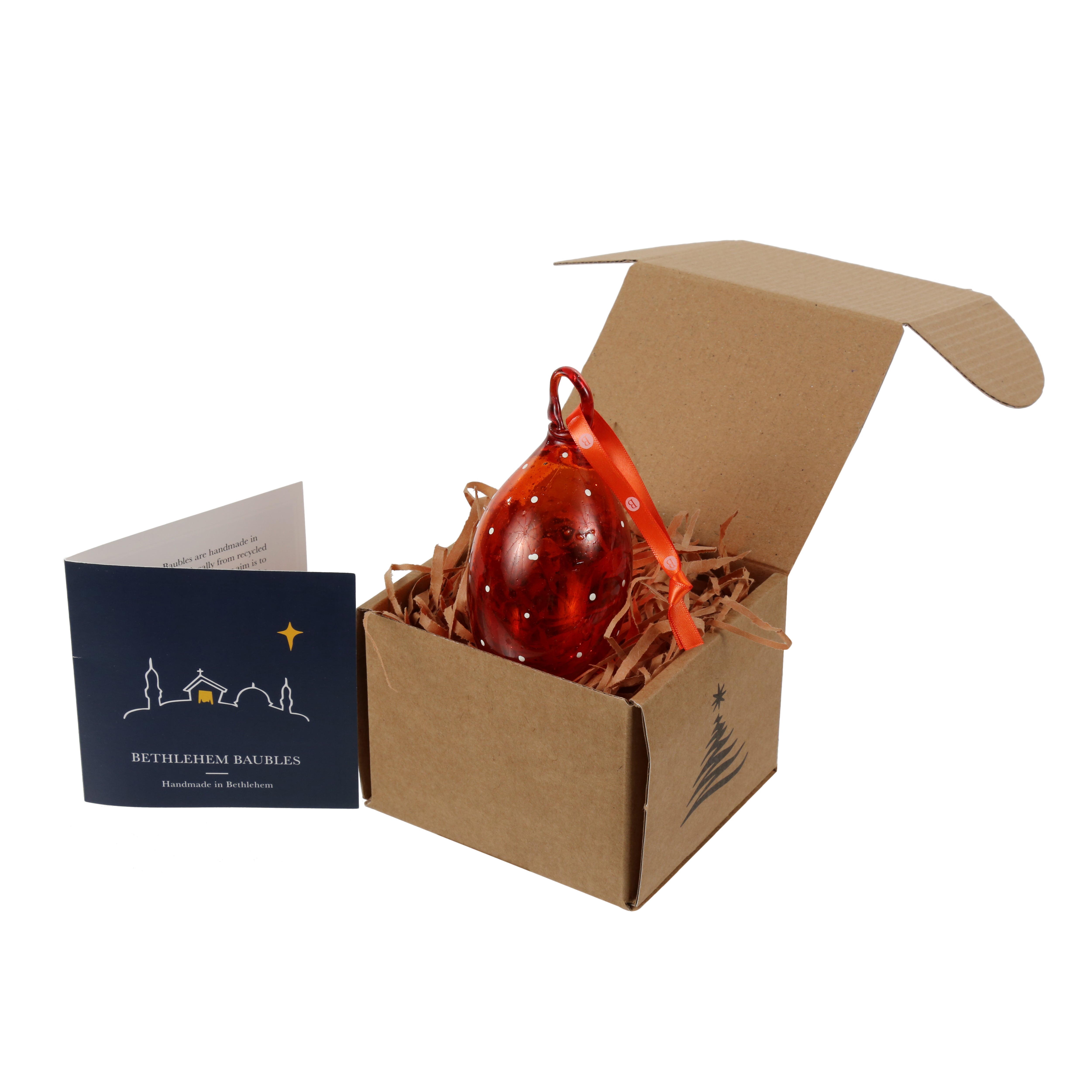 Each bauble carries a unique story: handblown by Muslim artisans, painted by Christian women, and shipped with the help of Israel. A symbol of cooperation, hope, and shared humanity.